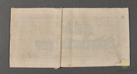 German WWII Assistant Stretcher Bearer Armband-This Auxiliary Stretcher Bearer’s armband was worn by personnel assisting military medical and Red Cross personnel in the service of removing the wounded from the battlefield. This example is made of a woven white rayon with a black embroidered Gothic script that reads “Hilfs Krankenträger” (Auxiliary Stretcher Bearer). The script is encompassed by a black embroidered, rectangular border. Both the top and bottom edges of the armband have a dual-ply, machine stitched, hem and the reverse has a machine stitched, vertical seam in the center. The armband is in very good condition. Very clean!