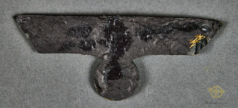 Veteran Bring Back German WWII Army General’s Breast Eagle-Hand embroidered gold bullion eagle that shows great detail. This is on a light green badge cloth. The gold bullion has toned in some areas, lending to a great vintage look. The paper backing is intact on the reverse, there are some remnants of glue remaining on the reverse, most likely from being in a scrapbook. This is a very special offering. This was most definitely removed from a tunic. Don’t miss this one!