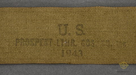 WWII US Army M-1936 Field Musette Bag 45th Inf Div- This bag is something else!  A very common bag it is but with the attributed 45th Thunderbirds writing on front that adds some rarity!  The writing has faded some That name is a bit difficult to read Chas mnt (?) Fin O 45th Div.  As we know the 45th Division had an extensive and proud service record during WWII. The bag itself shows some wear and discolorations well as some light corrosion to the metal hardware.  It is marked under flap Kadin 1942. The adjustable shoulder strap is marked and dated 1943.  An interesting bag from a very notable division!