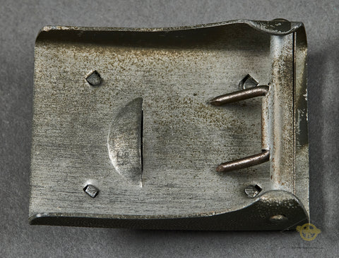 German WWII Late War Luftwaffe Belt Buckle-This is a very interesting buckle, it is made out of zinc. The interesting part is that since it is late war. When they sprayed the final finish on this buckle, they only took the time to paint the front of this buckle. This buckle is gorgeous. It is unissued, with a finish that remains almost totally intact. The details are excellent. The reverse is plain metal, with a half-moon catch, and steel rollbar that remains unfinished as well. This is a great example of a late war buckle.