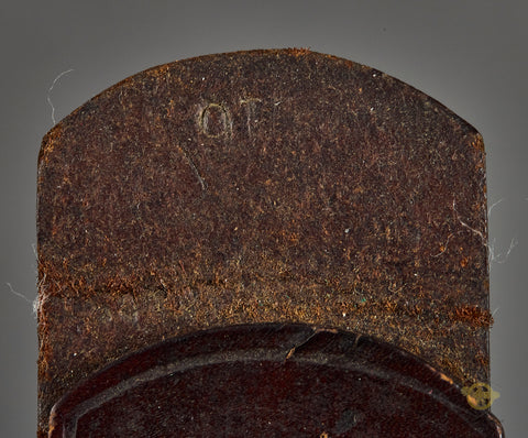 WWI German Army Buckle w/Tab-This is an early steel combat buckle that retains the majority of its original olive-green finish. The buckle does have some spots of missing and finish that has lifted a bit. It is an uncleaned example and there is some visible wear. The reverse features a "U" shaped catch with steel roll bar and prongs. This has a great brown leather tab that is still soft and supple. The tab is unmarked This is a very good example!