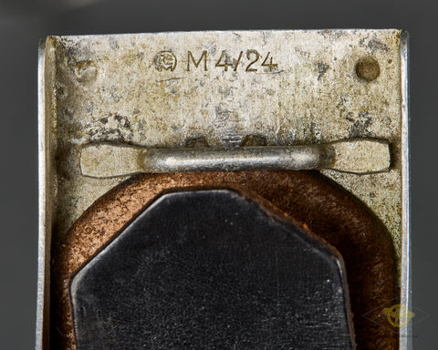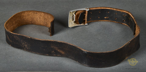 WWII German DAF Belt and Buckle-This buckle is for other ranks personnel. It is produced in aluminum with a silver finish that remains 95% intact. The bar type catch is aluminum with a plated steel roll bar and prongs. The catch end is marked with an RZM motto followed by m4/24, which indicates production by Friedrich Linden of Lüdenscheid. The brown leather belt is in good condition. It is still soft and supple and looks good. The catch at the end of the belt is missing, so please be sure to look closely at the photos. This belt measures 38 inches (96.52cm) so will fit a 35 inch waist. Overall, this is in good condition, and a great wartime example.