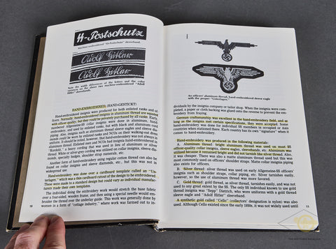 Cloth Insignia of the SS by John R. Angolia-Used hardcover without dust jacket, this 496-page book is used but in very good shape. The edges are slightly rubbed as are the edges of the hardcover. This shows some shelf use, but otherwise it is really like new. Someone has written John Angolia’s phone number down, just under the dedication. This book is complete with black and white illustrations throughout. This is the 'benchmark' book regarding SS insignia. A must have for any collection. This is the second edition, published in 1983. A true gem.