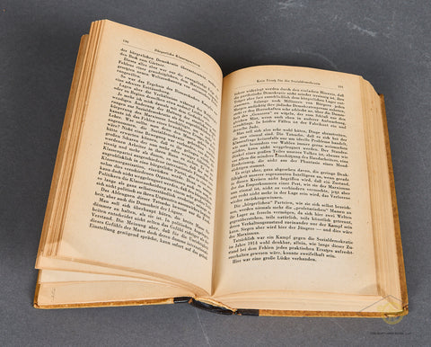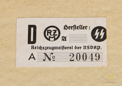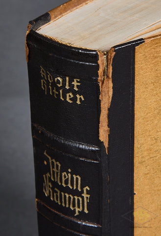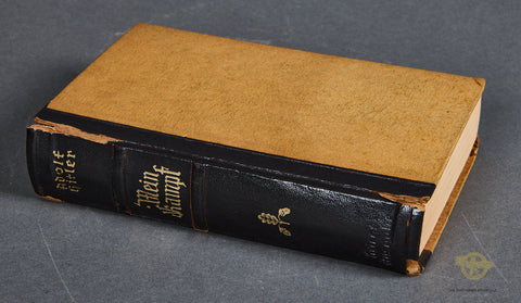 Mein Kampf Wedding (Hochzeitsausgabe) Copy-This is a wedding copy which is in very good condition. This is an unissued copy, as it is only signed by the Burgemeister (Mayor) of Aachen. The couple’s names are not filled out, so this may have been pre-signed by the mayor and ready to use for any future ceremonies. I cannot find a print date on this book, just the copywrite date of 1925. At the time of the printing of this edition there were over 8,400,000 copies of Mein Kampf in print, among the very best-selling books in the world! The spine on this copy is well used; you can see cracking and spine loss to the black at both the top and the bottom. Please look closely at the photos. There is an SS RZM tag that someone has affixed to the inside cover. We are not sure if this was done by a GI, or why this happened. We have not attempted to remove it. Otherwise, this edition is very good. All 782 pages are clean, as is the sepia photo of Hitler and the dedication page. Priced to sell.