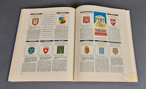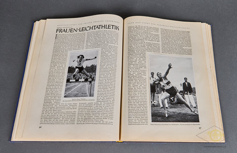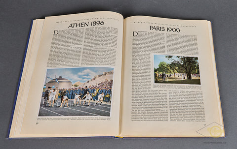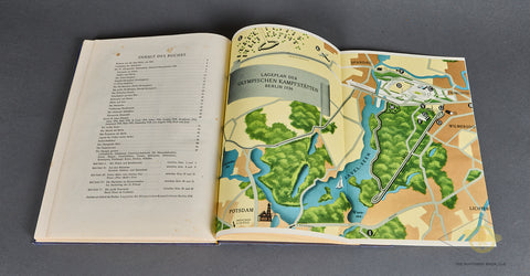 Olympia 1936 Band 1-This is the cigarette type book that was published for the Winter Olympic games held in Berlin in 1936. It is a large format, hard cover book with 128 pages plus a large fold out of the Olympic grounds at the end. All of the pics are intact. This is volume 1 of the 2-volume series. There is minor wear and discoloration only to the cover and pages. The binding is tight. Good condition!