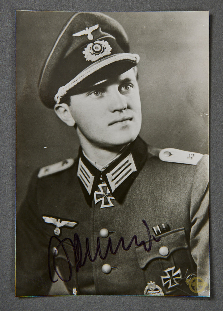 German WWII Signed Photo of Knights Cross Winner Reinhard Peters-Peters won the knights cross in February of 1944 as leader of the 4th panzer Regiment 35. The 4th Company fought as part of Panzer-Regiment 35 from the beginning until the end of the Second World War, and for most of that period as part of the 4th Panzer Division. It fought on many fronts, but the bulk of its combat time was spent in the battles on the central sector of the Eastern front. Fighting back from Moscow all the way to East Prussia, the 4th Panzer division emerged as the most decorated division of the Heer. 4th Company was able to achieve the impressive feat of producing five Knights Cross Holders in the space of just under 2 years despite its relatively unremarkable status. It thus was the most distinguished non-Tiger panzer company in the German army.