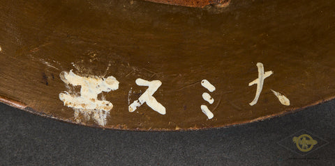 WWII Japanese Army Combat Helmet-This example has a hand painted olive drab combat finish that remains 75% intact. There is a metal army star at the front. The interior features the original brown leather, three pad liner with tan canvas suspension and chinstrap. All are in fine condition with no issues other than the expected wear etc. There is kanji at the rear skirt. A very good example!