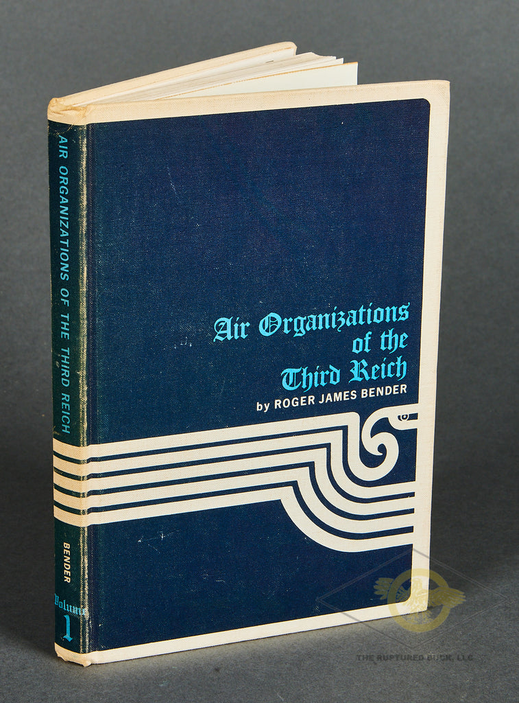 Air Organizations of the Third Reich- This book is by Roger James Bender, and is volume one, and printed in 1967. Accurate and detailed reference book on German aviation during the Third Reich era. 192 pages. There is some age toning to the inside cover, and the hardcover, without dustjacket, is slightly faded. This is long since out of print.