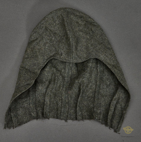 WWII German Winter Wool Hood for Overcoat-The hood is in very good condition. This was cut from an overcoat. Reason being we are unsure of. Likely scenario is it was in the way or added some comfort to the cold that could be easily worn under a helmet without the use of the bulky overcoat. Personally I would set this hood up on a foam head under a helmet for a different way to display.