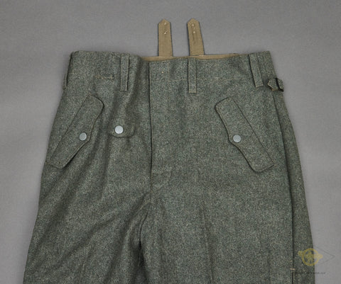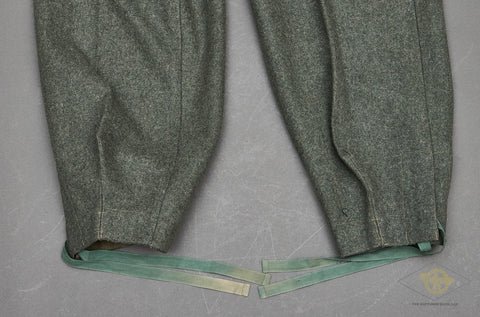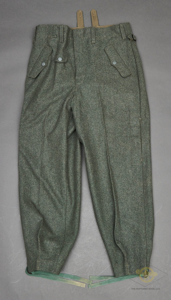 REPLICA, POST WAR WWII German Paratrooper Trousers-These are a scarce and expensive item so we figured we would offer this POST WAR REPLICA set as an alternative. The quality is excellent and they definitely look the part. This set has a size 36 waist and they are 39” in length. A good alternative to the $12k to $15k for a real set!