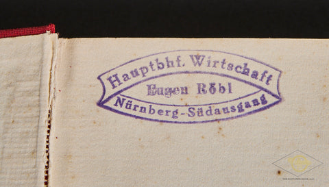 ‘Nurnberg-Sudaugang’ means Nuremberg South Exit, so this book was property of Nuremberg Central Railway Station (South Exit).