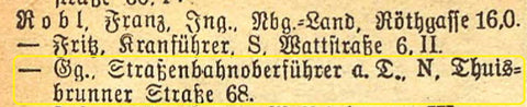 Here is an entry in the address directory for Nuremberg dated 1940. ‘Eg.’ Is for Eugen. ‘Stras[s]enbahnoberfuhrer’ would be for a ‘railway’ Oberfuhrer.
