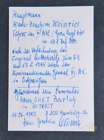 German WWII Signed Photo of Knights Cross Winner Hans-Joachim Heinrici-The following wartime article describes the Knights Cross action of Hauptmann Heinrici.